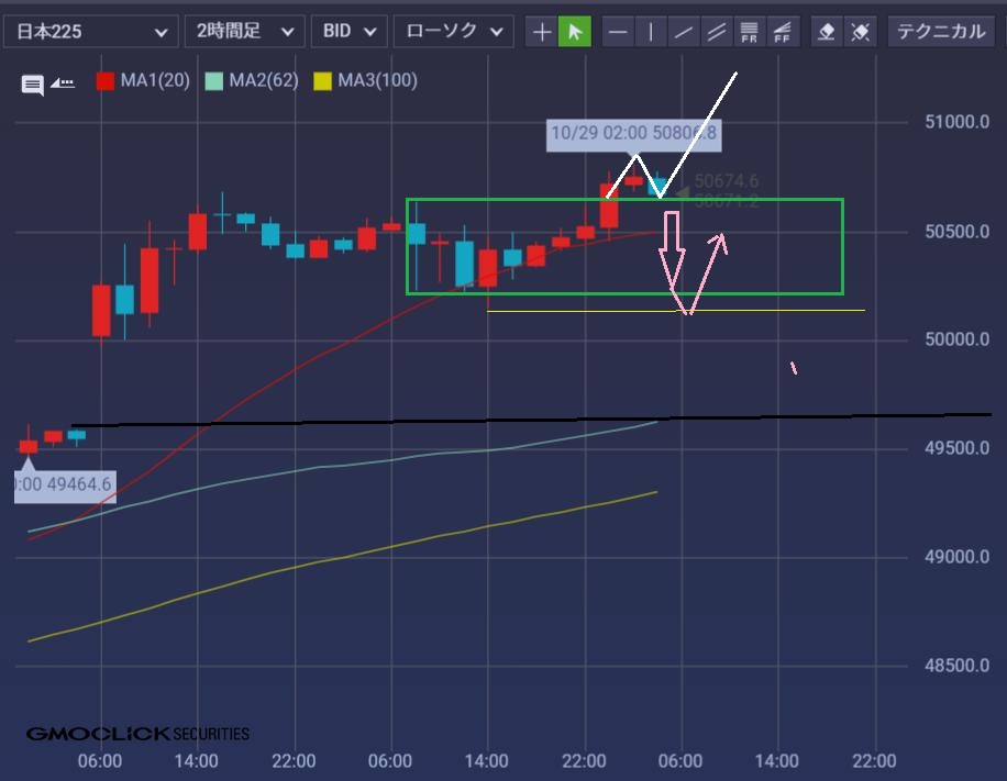ここから上行くのか、下限に向けてレンジに戻るのかというフェイズ。