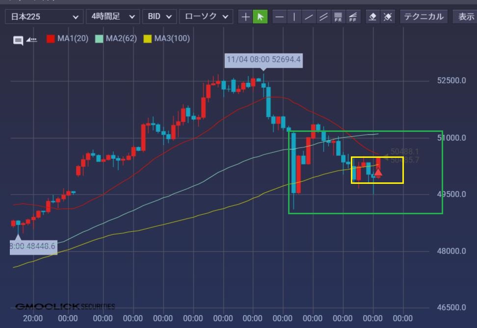 抜ければ、緑レンジ上限への引力で緑レンジ上限まで。
