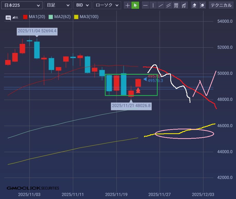 おそらく抜けられずゴソゴソで20日線と100日線の収縮を待って