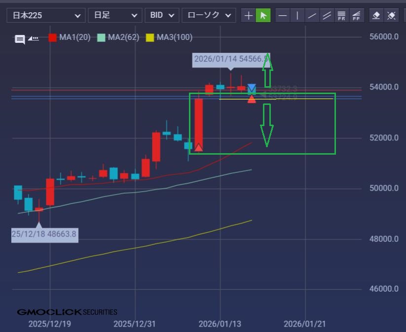 安値53509(黄)が関ヶ原で、まだチェックスしていない。