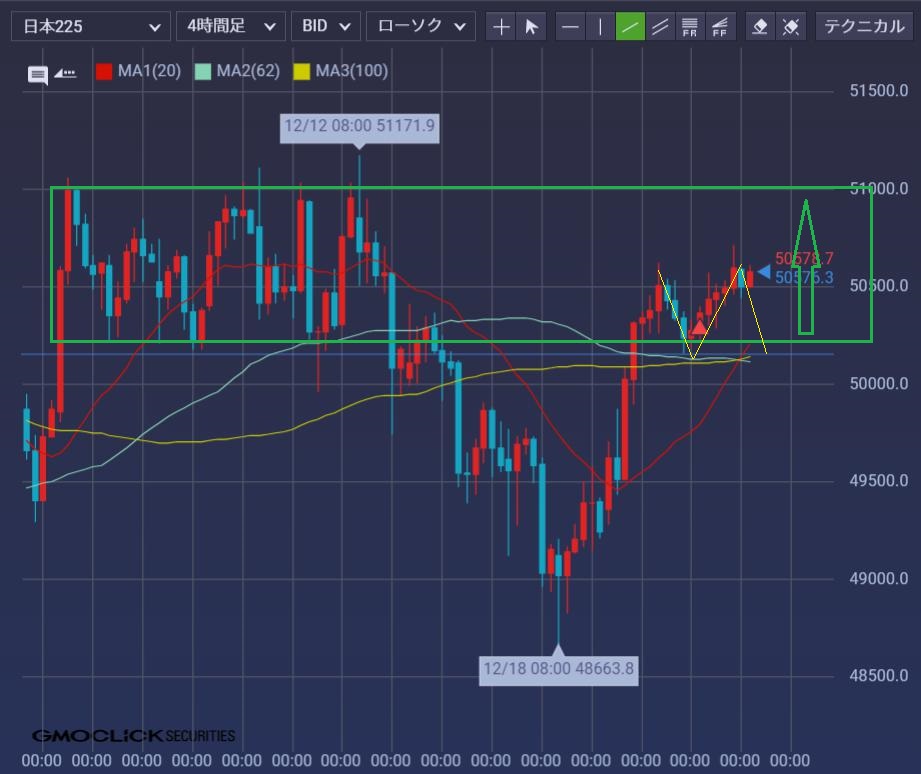 その場合、レンジ下限と支持線で強固なレジスタンスになるので買い目線。