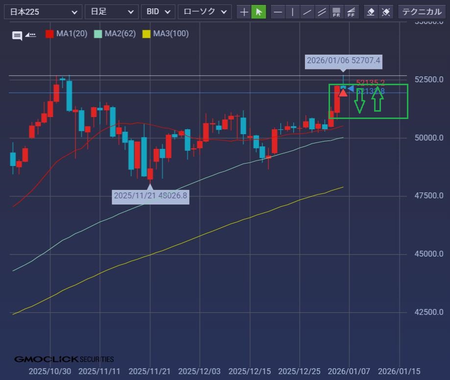 10月の直近最高値到達後、利食いの売りに押された1日。