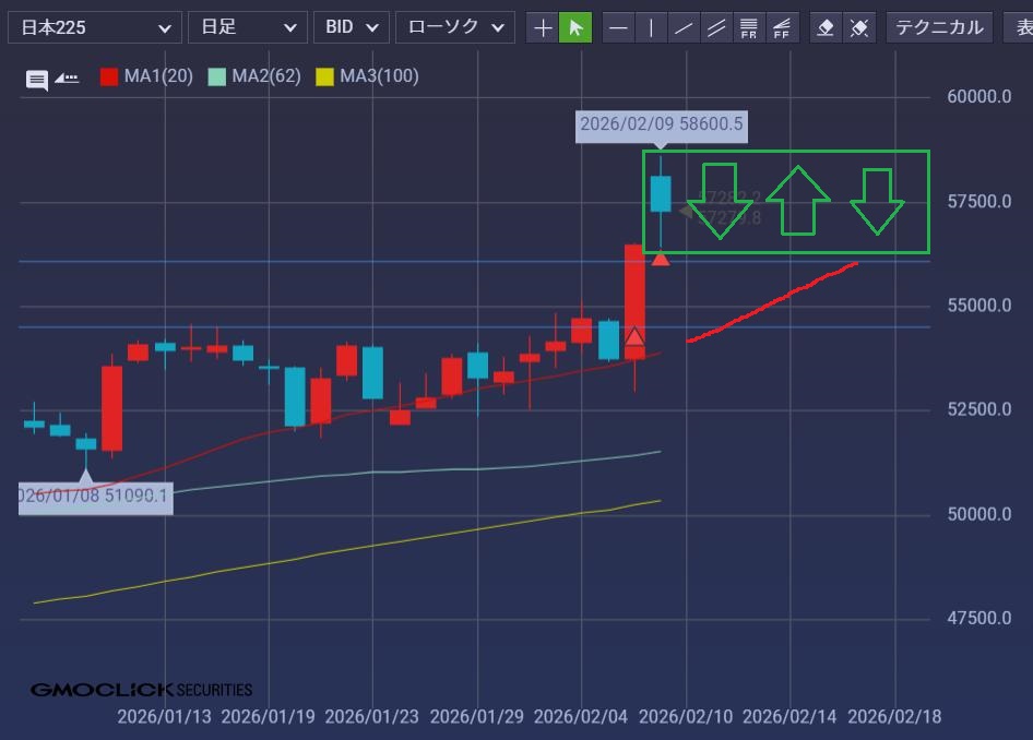 20日線との乖離もあり、しばらく中で上下動の想定。