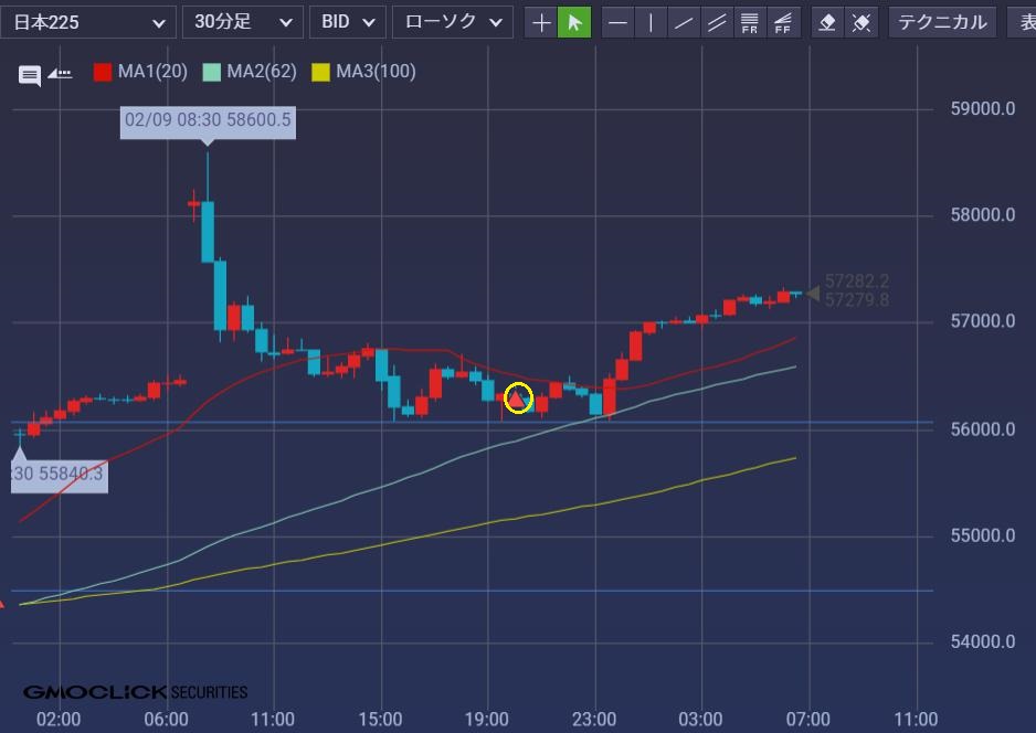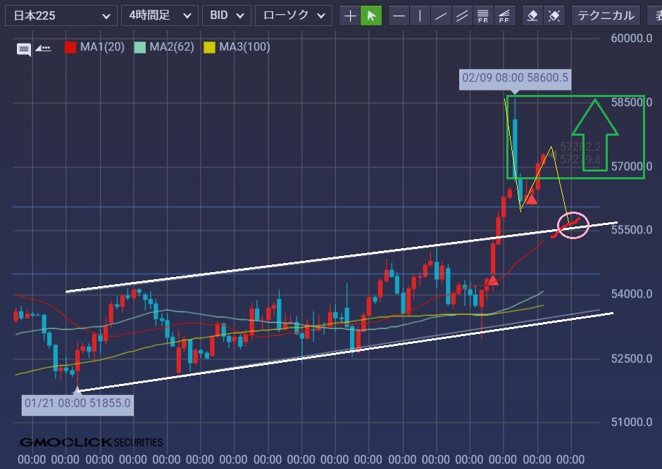 買い玉売り玉適時利食いが無難。2波動調整(黄)で20日線来たら御馳走の買い。