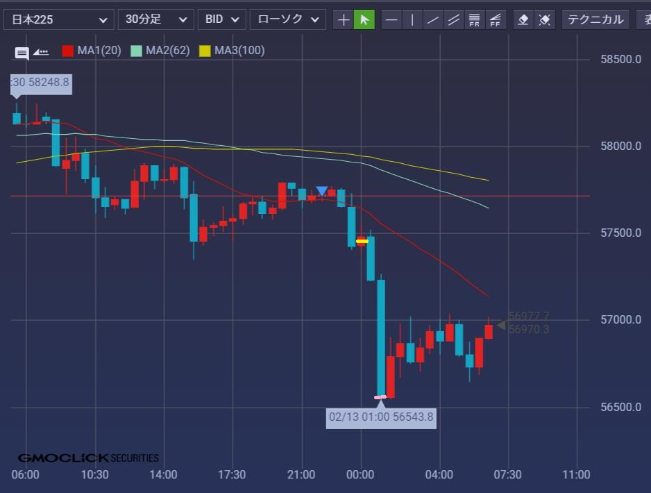 目先、昨日の安値での反応注視。レンジ下限までくるかもですな。