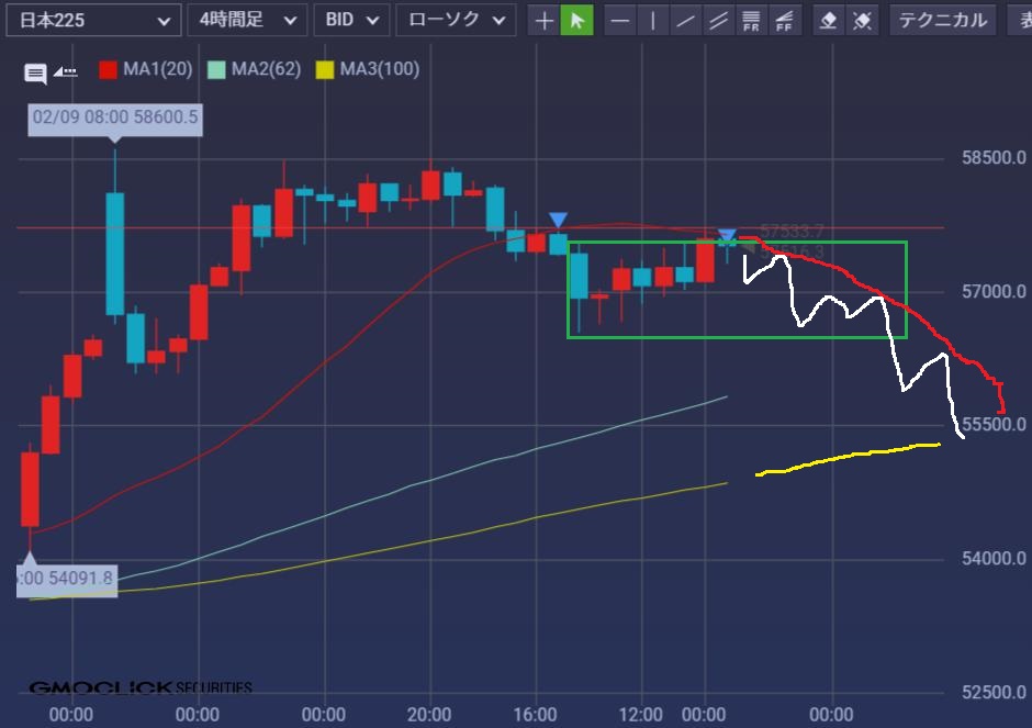 レンジ上限と20本線。朝1GUで上以外は単発アクションでブレイクは無理。