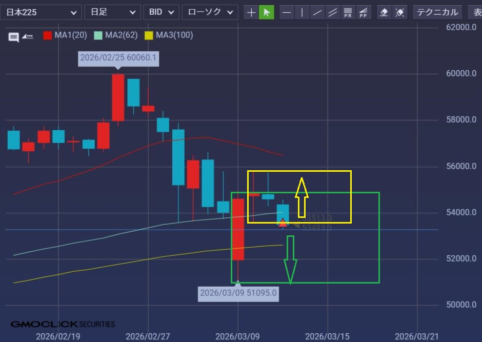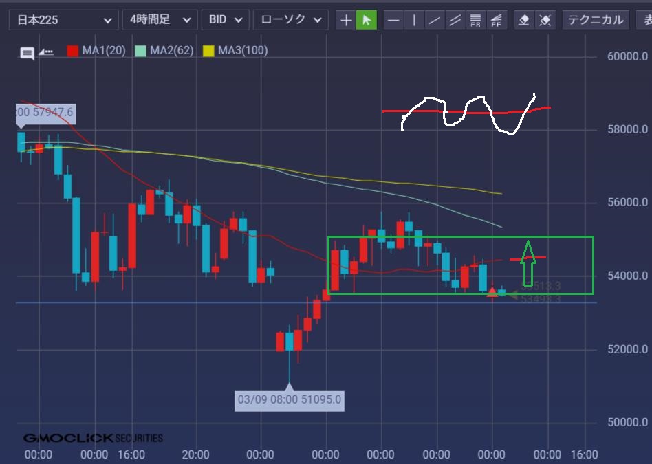 レンジ(緑)下限と、20本線平行の引力地獄ということで
