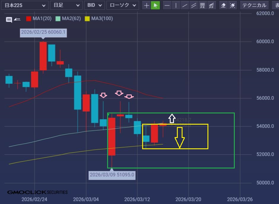 20本線平行時の引力地獄で、小幅上下の動き想定(白)。