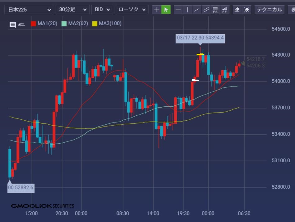 高値近辺には当ロジックのオビアヌスと、日足高値が鎮座。