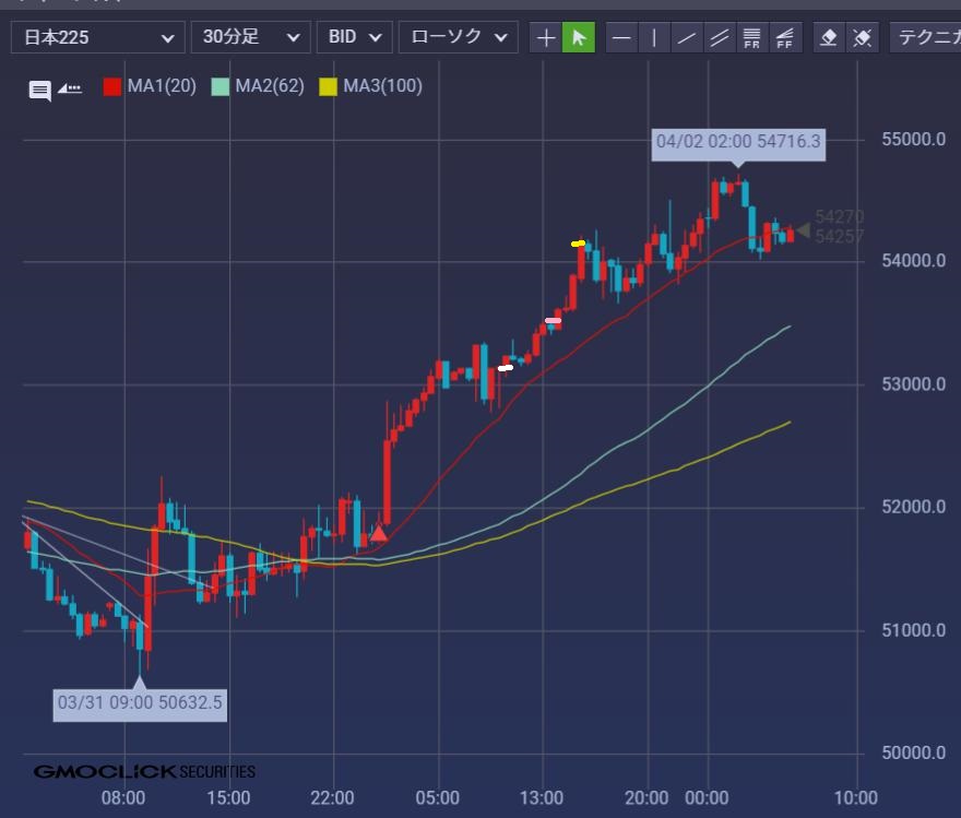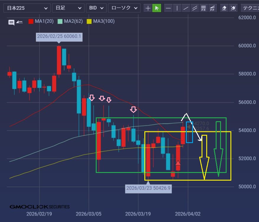 逆三尊(黄9キマって切り上がり(緑)。下も固い。