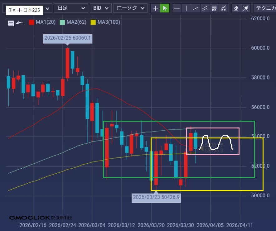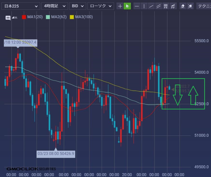 押し戻されるのか100本線で足場固めて上昇トレンド転換かの分かれ目。