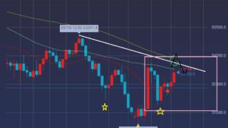 昨日のエントリ―ポイント解説日経先物前のアカウント凍結され、今コチラでやってます。日足昨日と同じく黄レンジ内の動きを想定。緑レンジ上限と56000処からの押下げ髭(桃)黄色レンジ上限への押下げ髭(赤)20日線も降りてきており、レンジ上限はた...